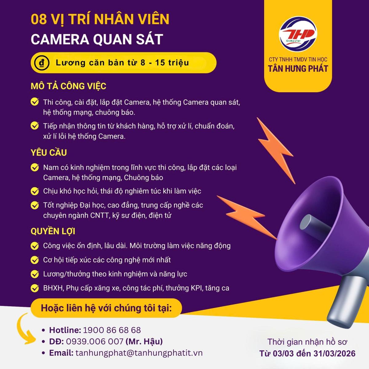 Đồng thời, Công ty Chúng tôi cam kết cung cấp cho khách hàng các sản phẩm và dịch vụ hoàn hảo nhất, mang lại lợi ích cao nhất cho khách hàng. Luôn coi trọng chất lượng phục vụ cộng với sự tận tình, chu đáo của đội ngũ nhân viên kinh doanh, kỹ thuật chuyên nghiệp, nhiệt huyết, tận tâm, Công Ty TNHH TMDV Tin Học Tân Hưng Phát luôn nhận được sự tín nhiệm của đối tác và Quý Khách hàng trên cả nước.